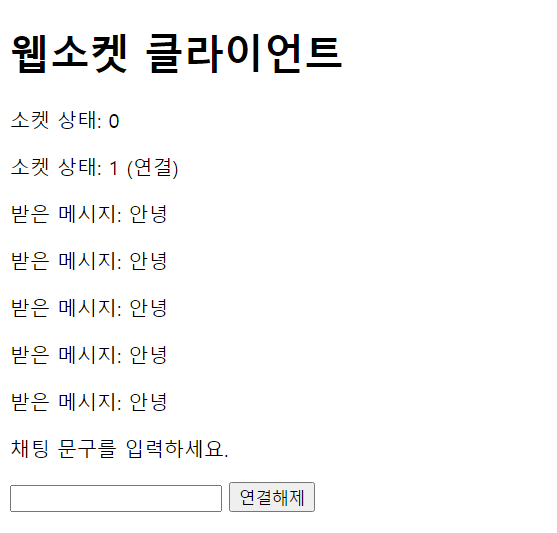 그러면 웹 브라우저에 연타 횟수만큼 "안녕"이라는 채팅 메시지가 표시됩니다.