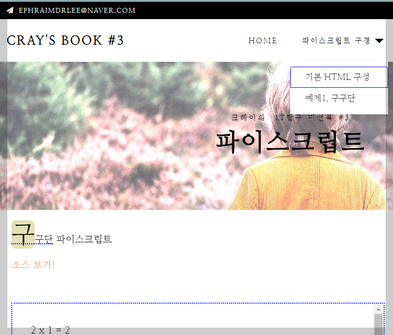 아래 홈페이지에 방문하시면 파이스크립트 구경 - 예제1. 구구단 메뉴에서