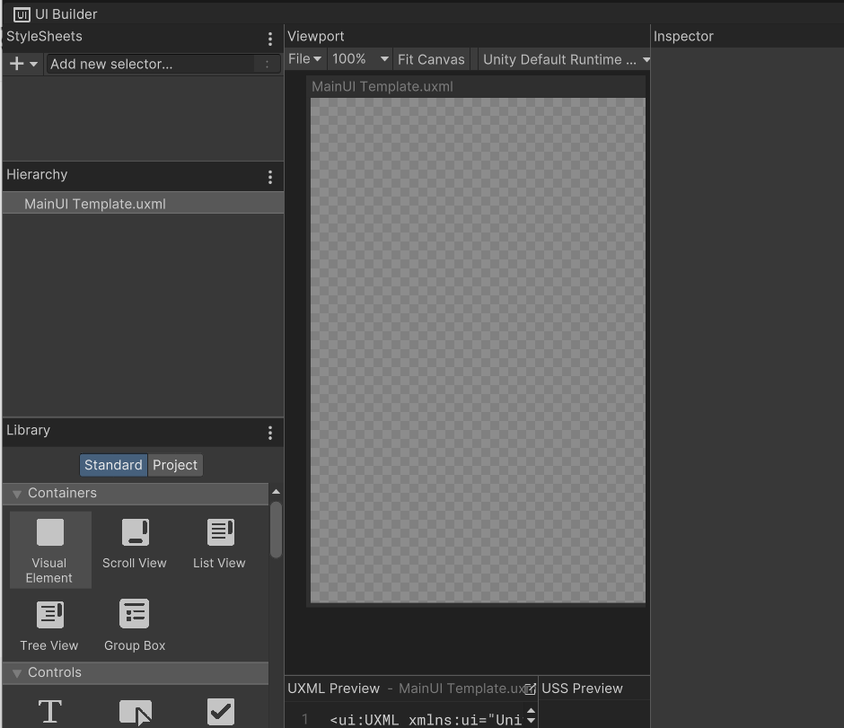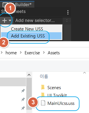 아래와 같이 UI Toolkit 화면에 스타일 시트가 포함된 것을 알 수 있습니다.