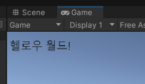 유니티 실행 화면에서 한글로 잘 표시되는 것을 확인할 수 있습니다! 와~우