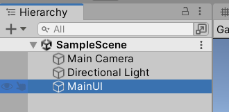 유니티 창으로 돌아와 Hierarchy ( 하이라키 ) 창에서 MainUI 오브젝트를 선택,
