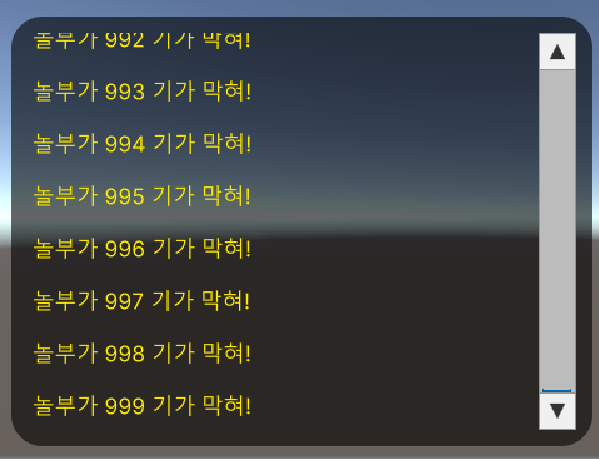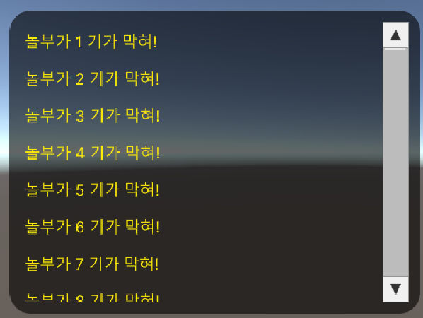 그래서 UI ToolKit 의 스크롤뷰 창을 아래와 같이 채워보았습니다.