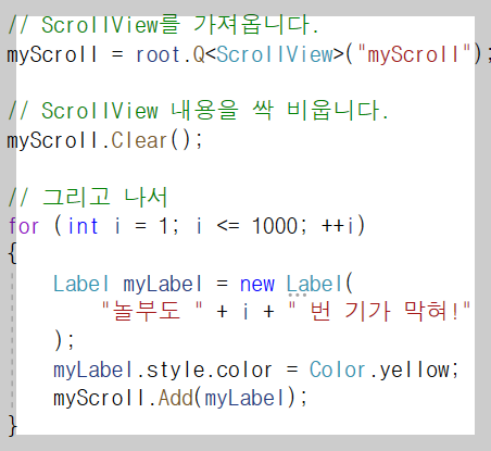 myScroll.Add(new Label("놀부가 기가 막혀"));
