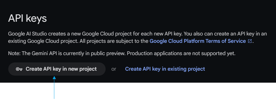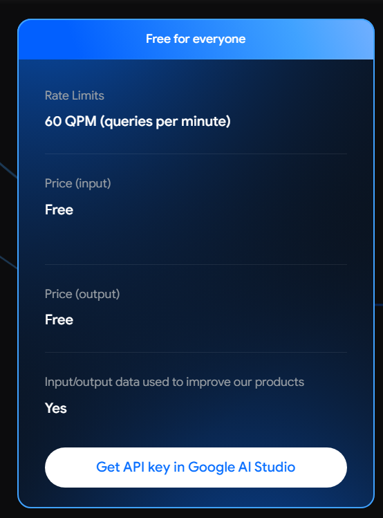 Free for everyone ( 모두에게 무료 ) 상자 하단의 Get API Key in Google AI Studio 버튼을 클릭하시면 됩니다.