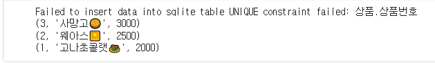 cursor.execute ("""CREATE TABLE IF NOT EXISTS 상품 (