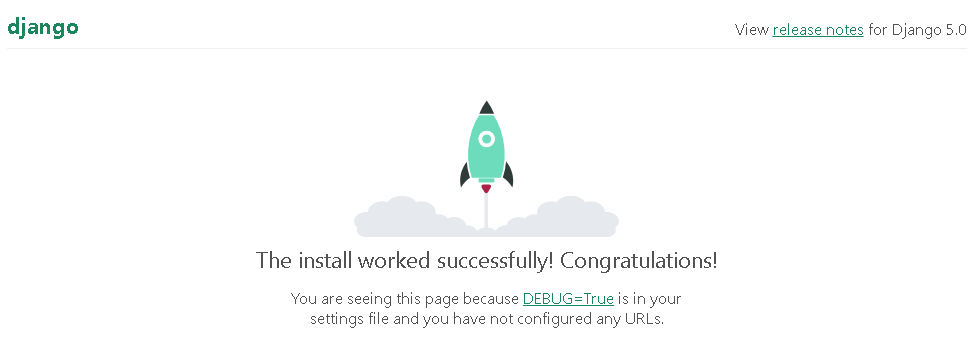 위 URL을 클릭하면 장고가 제공하는 기본 홈페이지가 뜹니다.