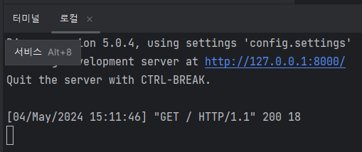 이제 장고 웹 서버를 실행해보겠습니다.