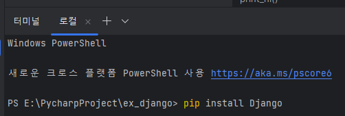 그곳에 아래 명령을 입력하여 장고를 설치하면 됩니다.