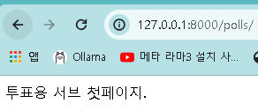 금방 추가한 서브 페이지 URL 은 http://127.0.0.1/polls 가 될텐데요.