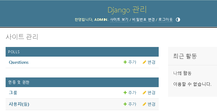 장고는 몇가지 세팅을 하는 것으로 데이터를 관리할 수 있는 관리자 페이지를 제공하는데요.