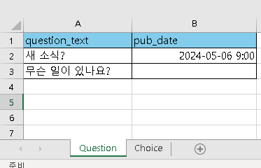 이제 Question 테이블에 데이터를 입력해 보겠습니다.