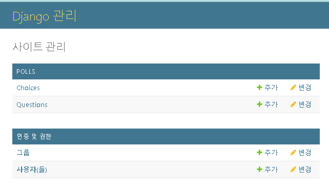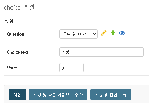 관리자 페이지에 접속하면, Choices 테이블도 조회되는 것을 볼 수 있는데요.