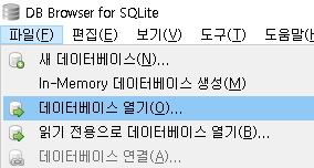 파일 - 데이터 베이스 열기 메뉴를 선택하여 프로젝트 루트 폴더에 있는 db.sqlite3 파일을 열어 보면 되는데요.