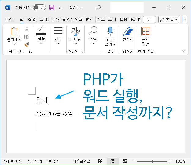 PHP는 이와 같이 MS-WORD 를 실행해 문서를 작성할 수 있는데요.