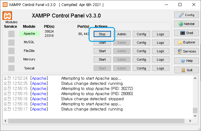 그리고 아파치 서버를 재시작해주시면 설정은 끝!