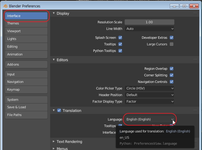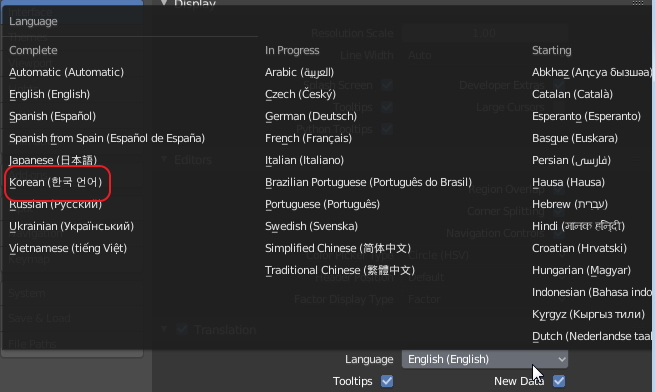 혹시라도 한글로 메뉴가 뜨지 않을 경우 Edit - Preference 메뉴를 선택,