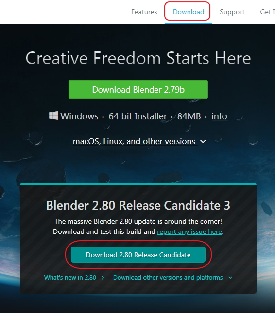 화면 아래 Download 2.80 Release Candidate 버튼을 선택해주세요