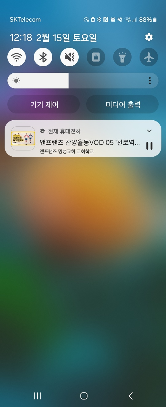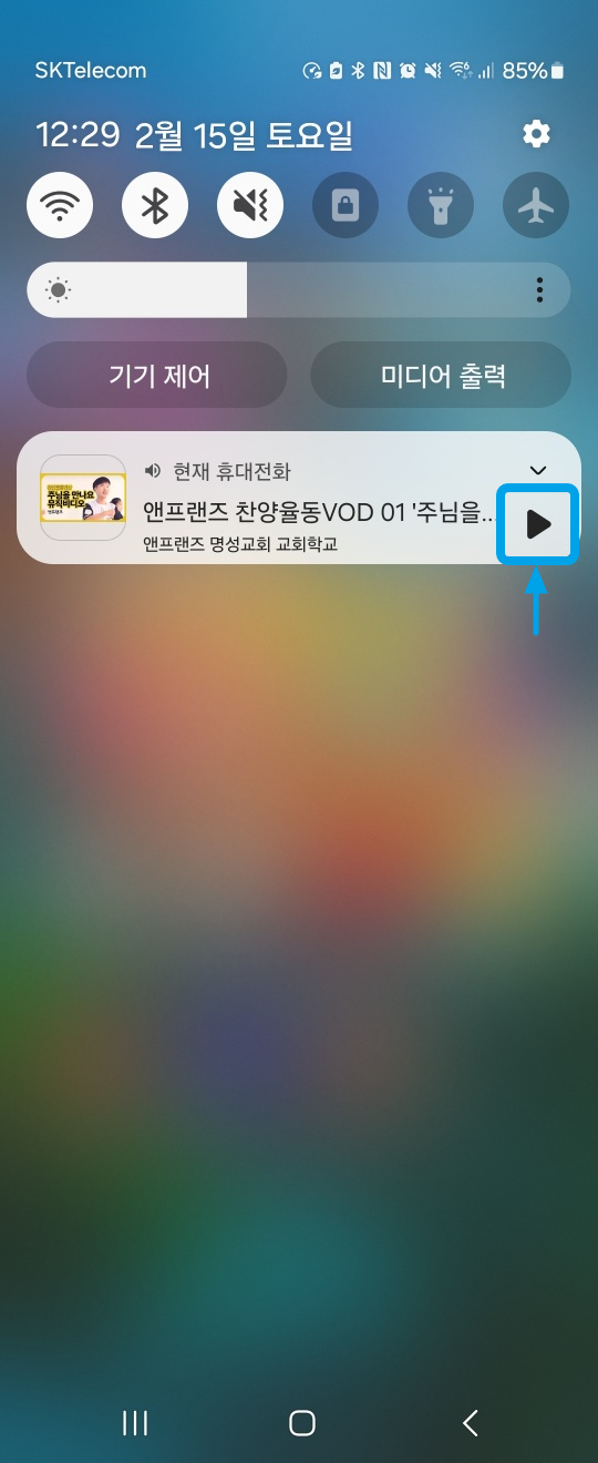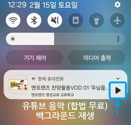 스마트 상단을 스와이프하면 재생이 중지상태일겁니다.