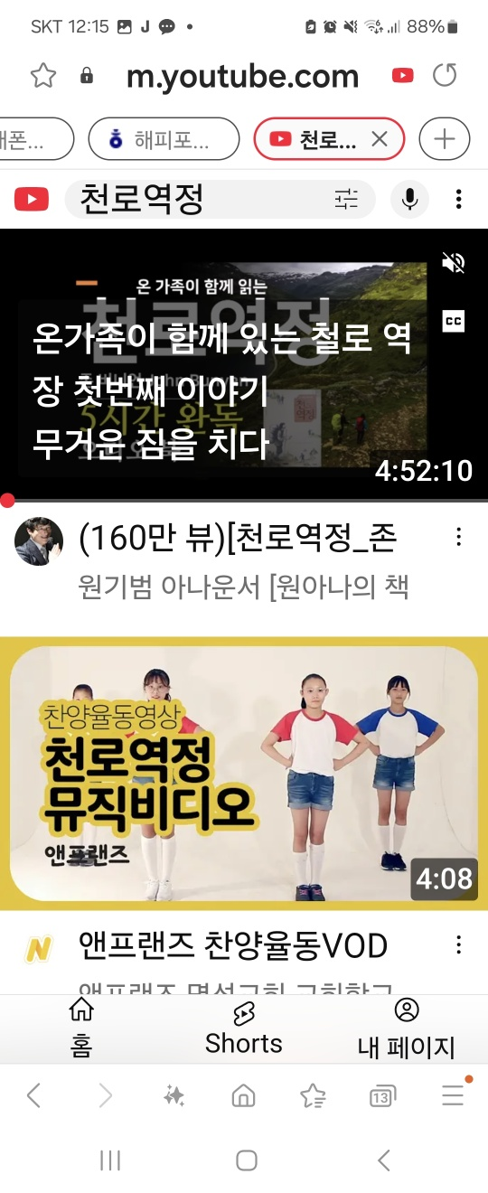 크레이는 좋아하는 찬양 중 '천로역정' 어린이 CCM을 검색해 재생하였습니다.