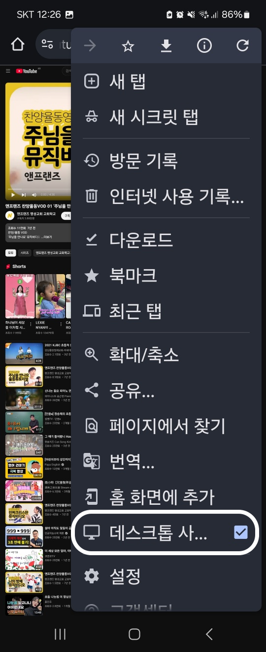 유튜브 앱이 아니라 '인터넷' 웹브라우저에서 재생하는 방법입니다.