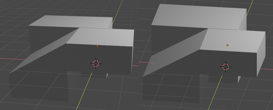 왼쪽은 원근모드이지만 오른쪽은 정사 모드입니다. 뭔가 좀 달라보이시죠?