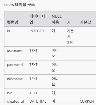 지난 번에 회원가입/로그인 기능을 만들었기에 users 테이블이 보이는군요.