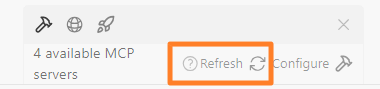 금방 펼쳤던 MCP 도구 아래 'Refresh'를 클릭하시면 됩니다.