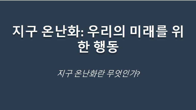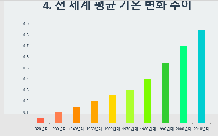 지구온난화 주제로 텍스트, 표, 막대그래프로 ppt 기획 만들어줘.