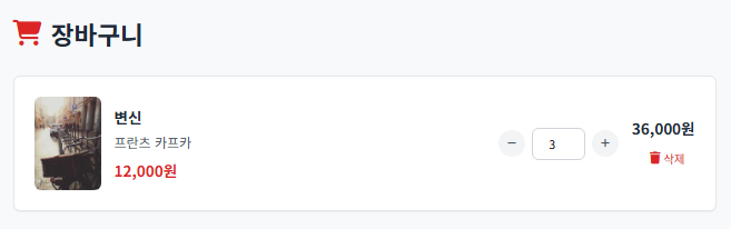 장바구니에서 수량을 조정하면 오류가 나는데 확인하고 수정해줘.