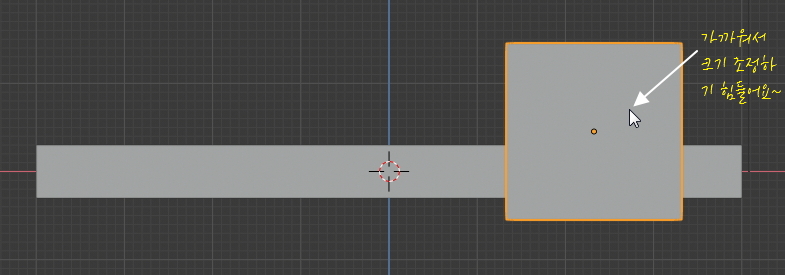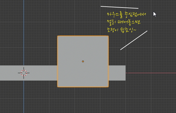 마우스를 중심점에서 멀리 뗀 다음, S 키를 누르시면 크기조절이 마우스 이동량에 비해 그리 크지 않아 조정이 더 쉽다는 점입니다.