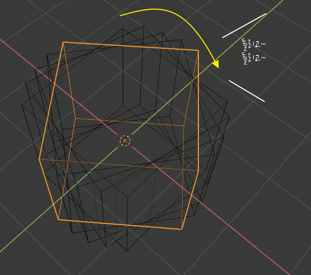 이제 회전에 해당하는 단축키 R을 누른 다음 마우스를 움직여 보겠습니다.