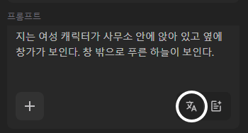 한글로 프롬프트를 입력 후, 번역 아이콘을 선택하면