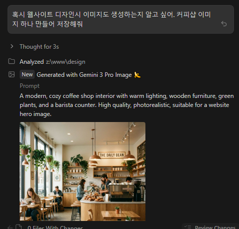 혹시 웹사이트 디자인시 이미지도 생성하는지 알고 싶어. 커피샵 이미지 하나 만들어 저장해줘
