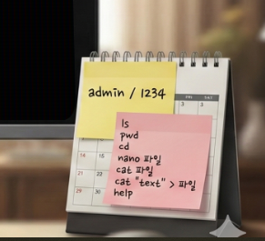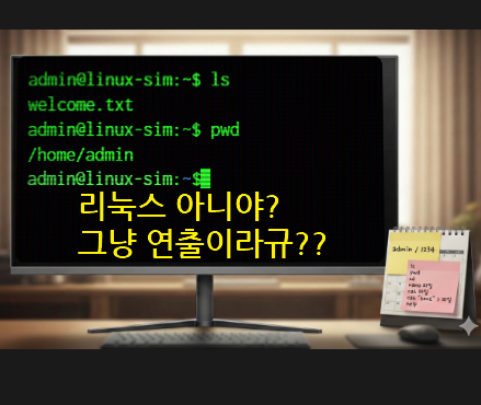 데스크톱 컴퓨터 화면이 바탕으로 보여지고 그 안에 검은 화면에 리눅스 시뮬레이터를 구성할거야.