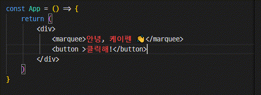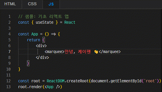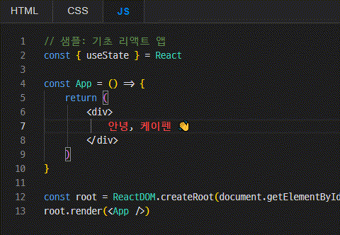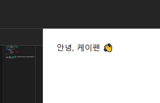 '안녕, 리액트' 문구를 '안녕 케이펜으로 바꾸면 ( 그냥 문서 편집하듯이 편집하시면 됩니다 )