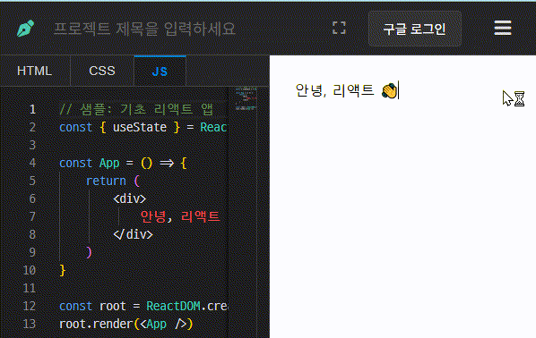 다시 K-Pen으로 돌아와서 JS 탭의 기존 코드를 지우고