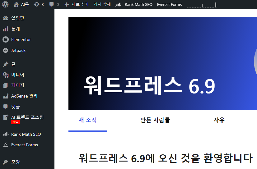 플러그인이 어마어마하게 많고 기능도 강력하지만 한글번역이 모호해서 ( 테마를 '모양'으로 번역.. ) 티스토리보다는 사용법이 좀 어렵습니다.