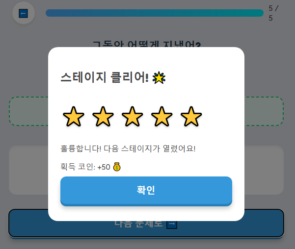 4개 이상의 별을 얻으면 다음 스테이지가 해금되어 도전할 수 있습니다.