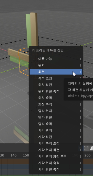 그리고 그 상태에서 다시 I 키를 누르고 회전을 선택합니다.
