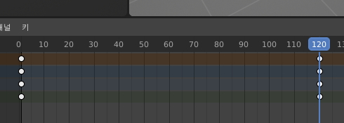 여기서 노란 점을 프레임의 움직임을 잡아줬다고 해서 키프레임이라고 부르는데요. 이제 120프레임에 키프레임을 잡아줄 차례입니다.