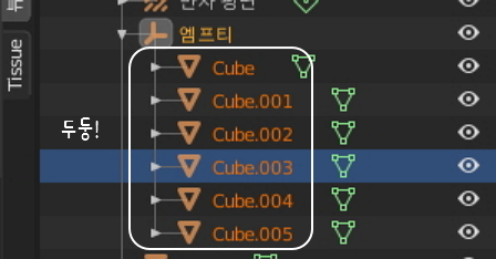 앰프티 오브젝트 하나만 선택해보신 다음에,