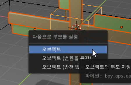그리고 나서 Ctrl + P 키를 누르시면 부모설정 팝업창이 노출되는데, 오브젝트 메뉴를 선택하시는 겁니다.