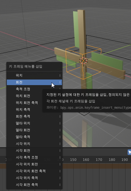 우리는 오브젝트를 회전할거니까 우선, 회전을 선택해주세요.