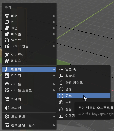 Shift + A 키를 눌러 앰프티 - 큐브를 선택해주세요.
