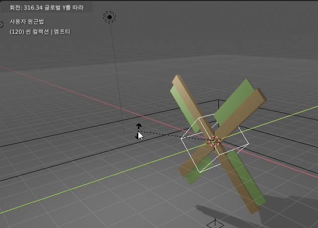 R, Y 키를 누르고 마우스를 빙글 돌려서 풍차날개를 360도 회전시킵니다.