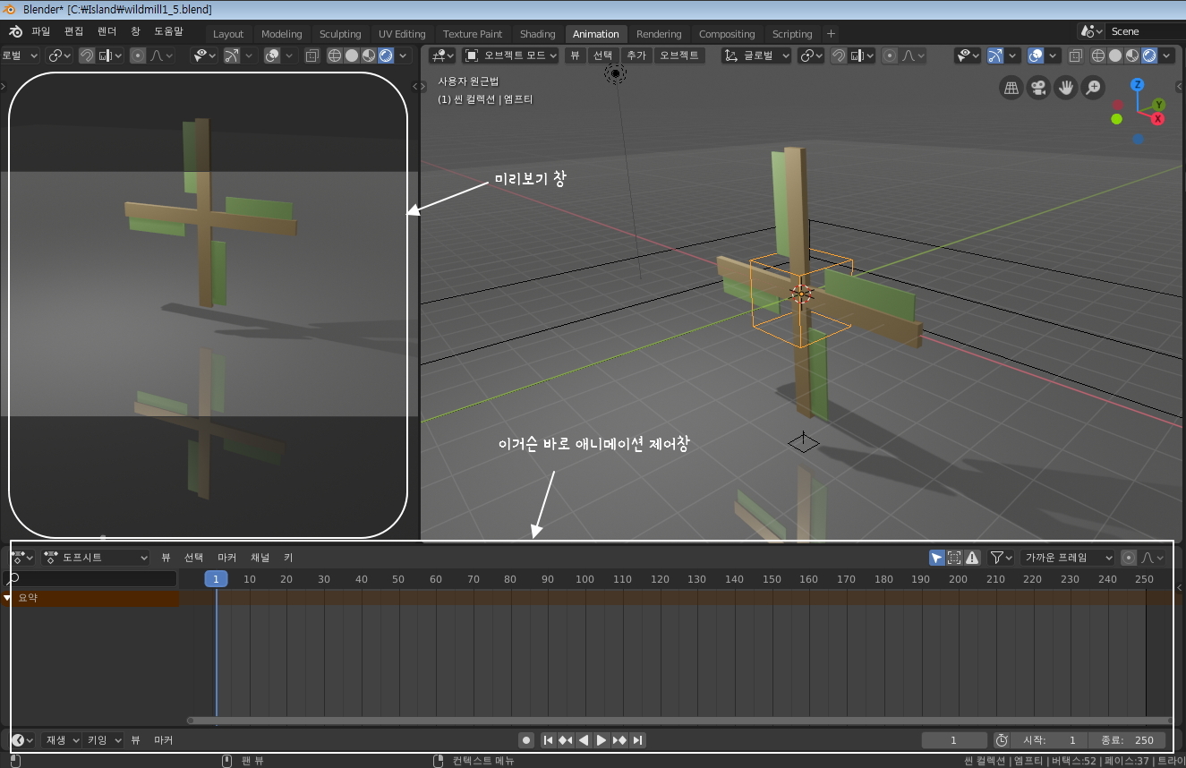 이번 시간에는 풍차를 간단하게나마 회전시키는 애니메이션을 만들어 보고자 합니다.