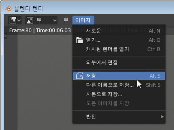 그건 바로 랜더링 화면에서 이미지 - 저장 버튼을 눌러주시면 됩니다.