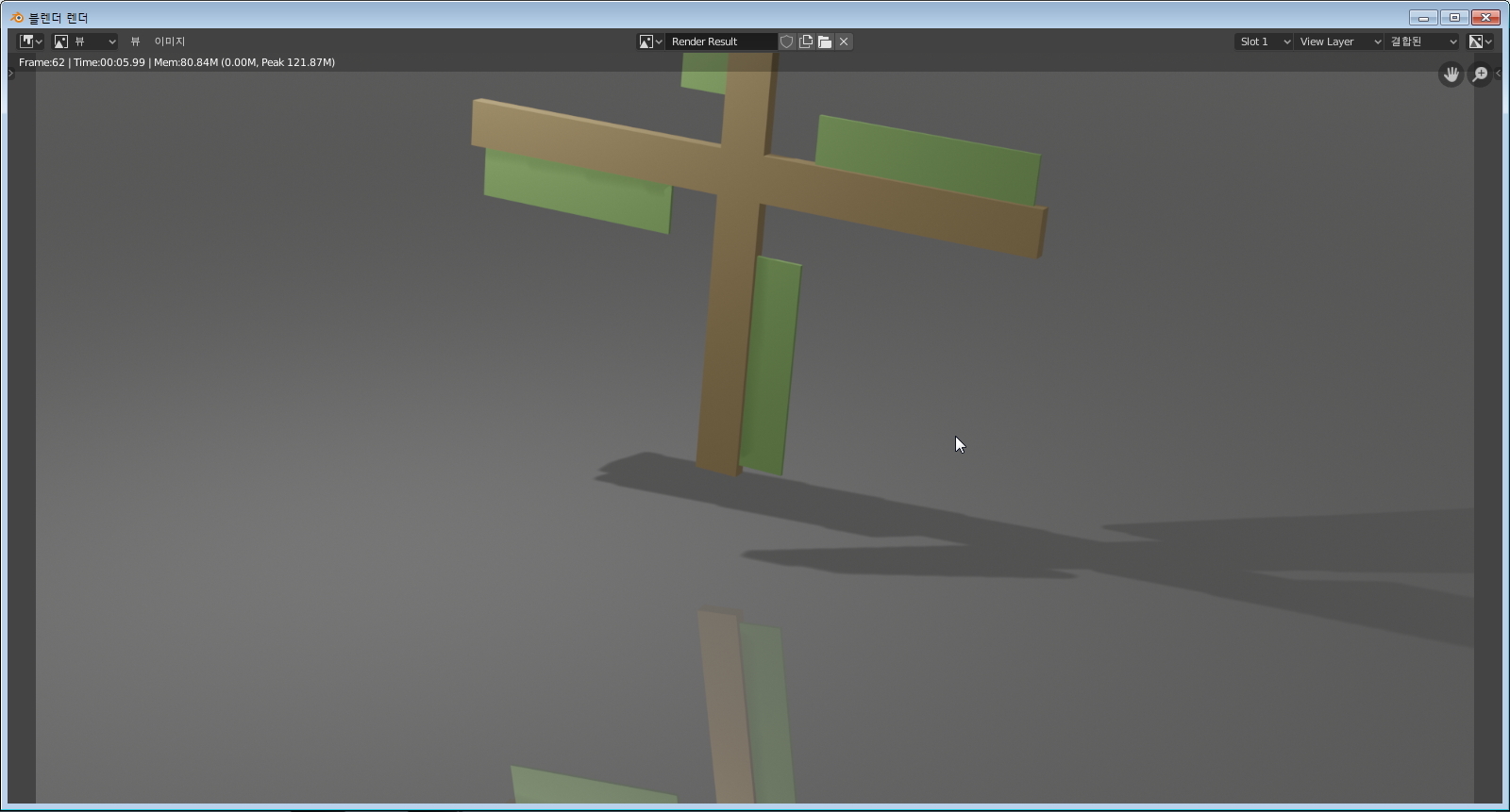 한번 정지장면을 렌더링해서 보도록 합시다. 화면을 이 방향으로 향하게 한 다음