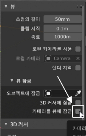 바로 카메라를 뷰에 잠금(Lock Camera to view) 옵션인데요