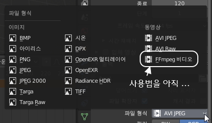 FFMPEG 라고 해서 코덱을 정하는 부분도 있긴 한데 이 부분은 아직 잘 작동이 안되는군요.